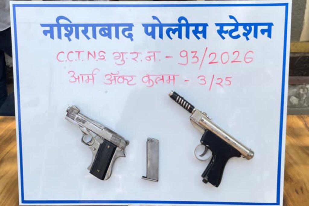 рддрдкрд╛рд╕рдгреАрджрд░рдореНрдпрд╛рди рдЖрд░реЛрдкреАрдЪреНрдпрд╛ рддрд╛рдмреНрдпрд╛рддреВрди рдПрдХ рд▓реЛрдЦрдВрдбреА, рдЪрдВрджреЗрд░реА рд░рдВрдЧрд╛рдЪрд╛ рдЧрд╛рд╡рдареА рдХрдЯреНрдЯрд╛ (рдкреНрд▓рд╛рд╕реНрдЯрд┐рдХ рдореБрдареАрд╕рд╣) рддрд╕реЗрдЪ рдПрдХ рдбрдореА рдХрдЯреНрдЯрд╛ рдЬрдкреНрдд рдХрд░рдгреНрдпрд╛рдд рдЖрд▓рд╛. рдЖрд░реЛрдкреА рдЪреЗрддрди рд╕реВрд░реНрдпрднрд╛рди рдкрд╛рдЯреАрд▓ (рд╡рдп 18, рд░рд╛. рд╡рд░рдЪреА рдЖрд│реА, рдирд╢рд┐рд░рд╛рдмрд╛рдж) рдпрд╛рд▓рд╛ рддрд╛рдмреНрдпрд╛рдд рдШреЗрдгреНрдпрд╛рдд рдЖрд▓реЗ рдЖрд╣реЗ.