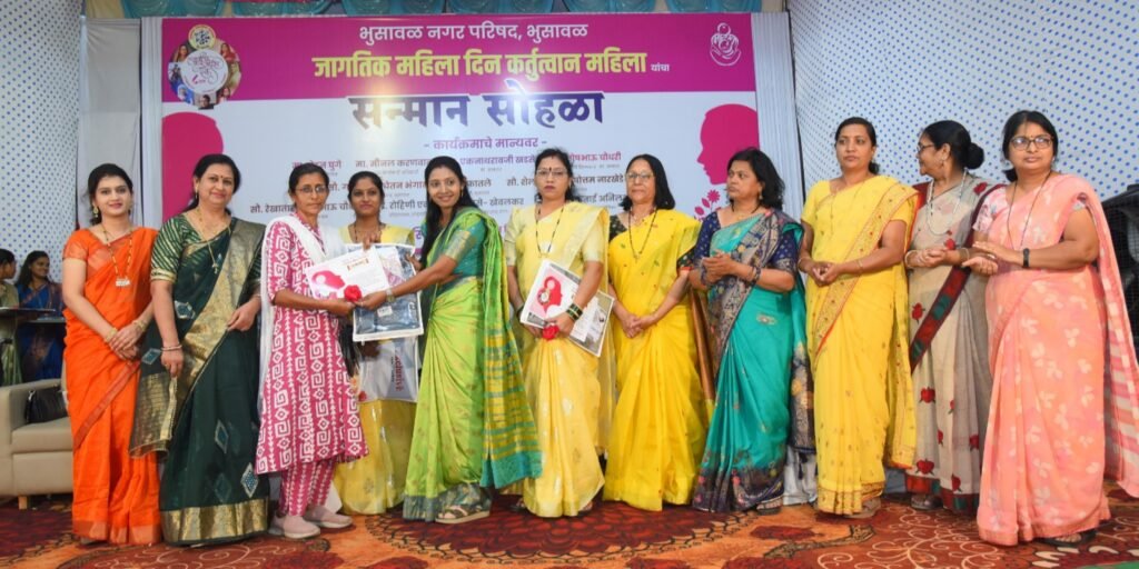 рдорд╣рд┐рд▓рд╛ рджрд┐рдирд╛рдирд┐рдорд┐рддреНрдд рднреБрд╕рд╛рд╡рд│ рдирдЧрд░ рдкрд░рд┐рд╖рджреЗрдорд╛рд░реНрдлрдд рдЙрдкреЗрдХреНрд╖рд┐рдд рд╡ рдХрд╖реНрдЯрдХрд░реА рд╕реБрдорд╛рд░реЗ рейрежреж рдорд╣рд┐рд▓рд╛рдВрдЪрд╛ рддрд╕реЗрдЪ рд╡рд┐рд╡рд┐рдз рдХреНрд╖реЗрддреНрд░рд╛рдд рдЙрд▓реНрд▓реЗрдЦрдиреАрдп рдХрд╛рд░реНрдп рдХрд░рдгрд╛рд▒реНрдпрд╛ рдирд┐рд╡рдбрдХ рдорд╣рд┐рд▓рд╛рдВрдЪрд╛ рд╕рдиреНрдорд╛рди рдХрд░рдгреНрдпрд╛рдд рдЖрд▓рд╛. рдпрд╛рдордзреНрдпреЗ рдЬрдпрд╢реНрд░реА рдХрд╛рд│рд╡реАрдЯ, рдЪрд╛рд░реВрд▓рддрд╛ рднрд╛рд▓реЗрд░рд╛рд╡, ре▓рдб. рднрдВрдбрд╛рд░реА рдпрд╛рдВрдЪреНрдпрд╛рд╕рд╣ рдЕрдиреЗрдХ рдорд╣рд┐рд▓рд╛рдВрдЪрд╛ рд╕рддреНрдХрд╛рд░ рдХрд░рдгреНрдпрд╛рдд рдЖрд▓рд╛.
